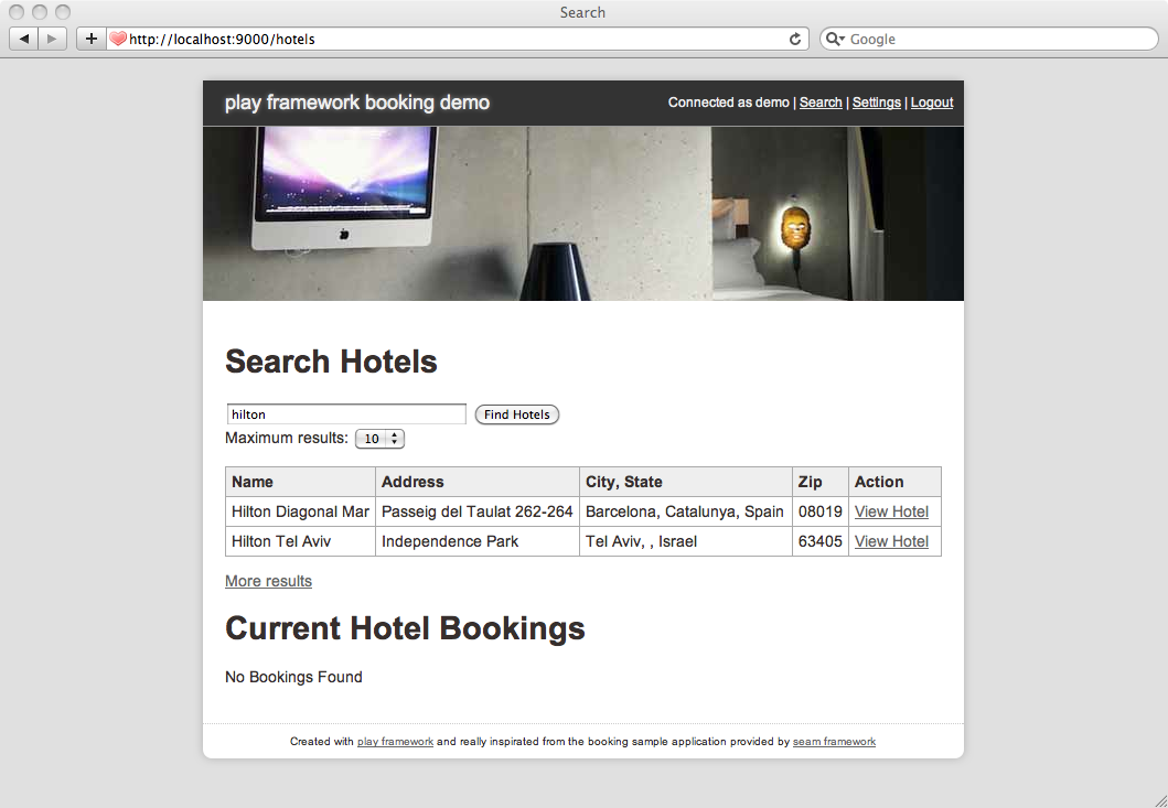 A port of the well known ‘booking’ application from the JBoss seam framework.