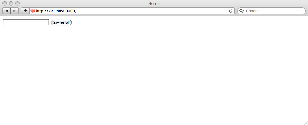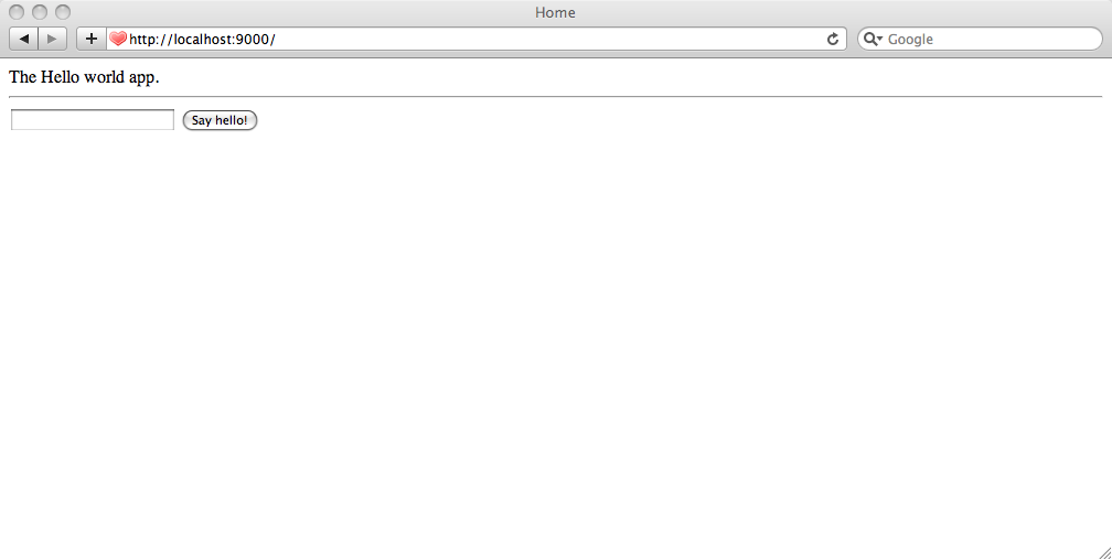 We use the @{…} notation to ask Play to automatically generate the URL able to invoke the Application.sayHello action. Now, refresh the home page in the browser.