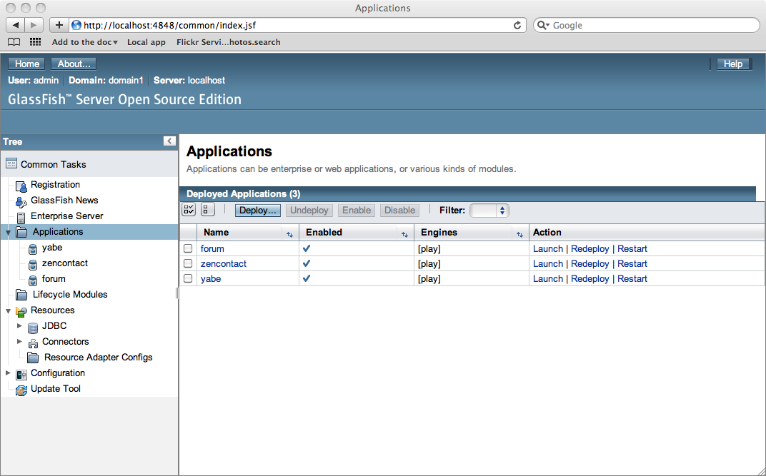 今回の Play には Glassfish アプリケーションサーバ 用のネイティブなコンテナが備わっています。これは、Play コンテナを追加することで、どの Glassfish サーバにおいても既存のあらゆるアプリケーションが実行できることを意味します。