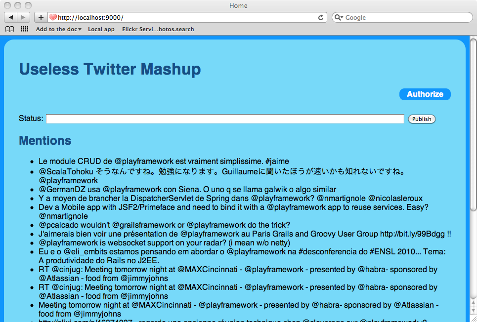 今回のリリースに OAuth プロトコルをサポートする play.libs.OAuth ライブラリがあります。OAuth は、web アプリケーションからシンプルで標準的な方法で、安全に認証を行う API を提供するオープンなプロトコルです。