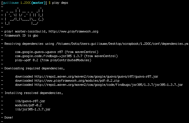 Play の依存性管理システム によって、アプリケーションの外部依存性を単一の dependencies.yml ファイルに記述することができます。