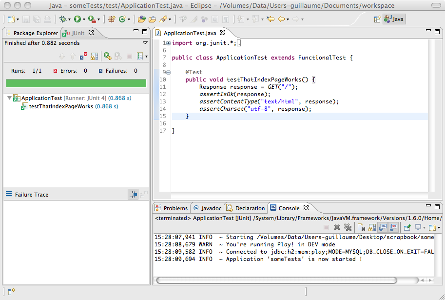 良い副作用として、H2 は db=mem が設定されているどのような Play アプリケーション でも /@db という URL で起動できる Web コンソールを提供します。